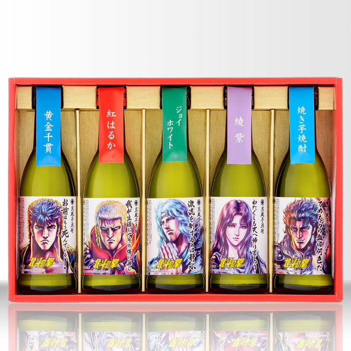 20,000円以上お買い上げで1個口分の送料は当店にて負担致します。 ※送料無料の場合でも東北・北海道に配送の場合+781円を別途頂いております。 詳しくは送料案内ページをご参照くださいませ。 TEL.092-884-3066 受付時間 10:00〜18:00 土・日・祝日も受付致しております。 ■様々な用途でご利用頂けます。 内祝 内祝い お祝い返し ウェディングギフト ブライダルギフト 引き出物 引出物 結婚引き出物 結婚引出物 結婚内祝い 出産内祝い 命名内祝い 入園内祝い 入学内祝い 卒園内祝い 卒業内祝い 就職内祝い 新築内祝い 引越し内祝い 快気内祝い 開店内祝い 二次会 披露宴 お祝い 御祝 結婚式 結婚祝い 出産祝い 初節句 七五三 入園祝い 入学祝い 卒園祝い 卒業祝い 成人式 就職祝い 昇進祝い 新築祝い 上棟祝い 引っ越し祝い 引越し祝い 開店祝い 退職祝い 快気祝い 全快祝い 初老祝い 還暦祝い 古稀祝い 喜寿祝い 傘寿祝い 米寿祝い 卒寿祝い 白寿祝い 長寿祝い 金婚式 銀婚式 ダイヤモンド婚式 結婚記念日 ギフト ギフトセット セット 詰め合わせ 贈答品 お返し お礼 御礼 ごあいさつ ご挨拶 御挨拶 プレゼント お見舞い お見舞御礼 お餞別 引越し 引越しご挨拶 記念日 誕生日 父の日 母の日 敬老の日 記念品 卒業記念品 定年退職記念品 ゴルフコンペ コンペ景品 景品 賞品 粗品 お香典返し 香典返し 志 満中陰志 弔事 会葬御礼 法要 法要引き出物 法要引出物 法事 法事引き出物 法事引出物 忌明け 四十九日 七七日忌明け志 一周忌 三回忌 回忌法要 偲び草 粗供養 初盆 供物 お供え お中元 御中元 お歳暮 御歳暮 お年賀 御年賀 残暑見舞い 年始挨拶 話題 のし無料 メッセージカード無料 ラッピング無料 手提げ袋無料 大量注文 ふるさと納税品ではありません 【コンビニ受取対応商品】【楽ギフ_包装】【楽ギフ_のし宛書】【楽ギフ_メッセ入力】 【あす楽対応】【あす楽_土曜営業】【あす楽_日曜営業】【あす楽_年中無休】 酒類の購入には、年齢制限がございます。 20歳未満の購入や飲酒は法律で禁止されています。 20歳未満の方は、酒類の購入は出来ません。 必ず生年月日を入力した上でご購入をお願い致します。 商品名 北斗の拳 ミニボトル5本セット 容量 270ml×5本 度数 25度 酒類 芋焼酎 原材料 黄金千貫:さつま芋・米麹(国産米) 紅はるか:さつま芋・米麹(国産米) ジョイホワイト:さつま芋・米麹(国産米) 綾紫:さつま芋・米麹(国産米) 焼き芋:さつま芋・米麹(国産米) 蒸留方法 常圧蒸留 製造元 合資会社 光武酒造場 〒849-1322 佐賀県鹿島市浜町乙2421番地 特徴 ●ケンシロウボトルは芋焼酎では王道の黄金千貫で仕込んでおり、飲みやすく定番の味わいです。 ●ラオウボトルは最強の蜜芋と呼ばれる紅はるかで仕込んでおり、芋本来の甘みを楽しめます。 ●トキボトルはジョイホワイトで仕込んでおり、引き締まった爽やかな甘みとフルーティーさをお楽しみいただけます。 ●ユリアボトルは綾紫で仕込んでおり、華やかな香りとやさしい口当たりで、誰にでも愛される味わいです。 ●レイボトルの焼き芋焼酎は、独特な甘みと焼き芋の香ばしさが癖になる味わいです。 ご注意 「お酒は20歳から!未成年者への酒類の販売は固くお断りしています!」 翌日配送対応:中部、近畿、中国、四国、九州/正午まで/土日祝日も営業致しております。 20,000円以上 お買い上げで 1個口分の送料 は当店にて負担致します。 ※送料無料 の場合でも 東北・北海道 に配送の場合 +781円 を別途頂いております。 詳しくは送料案内ページ をご参照くださいませ。